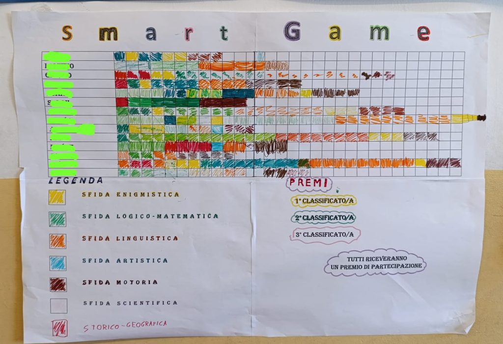 Quest’anno eravamo un po’ troppo attratti dalla serie “Squid Game” e da videogiochi in cui l’unica possibilità di vincere consisteva nell’annientare il proprio avversario. Abbiamo quindi deciso di sfidarci in maniera più divertente ed intelligente. È nato così il nostro “Smart Game” che ci ha accompagnati a suon di sfide enigmistiche, logico-matematiche, scientifiche, motorie e linguistiche, individuali e di squadra.