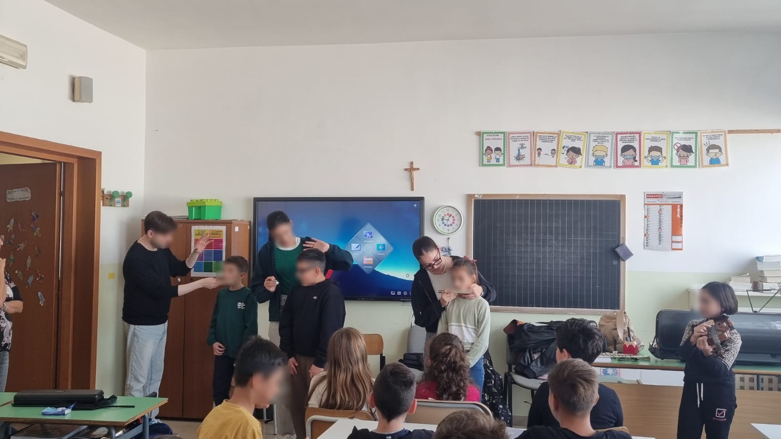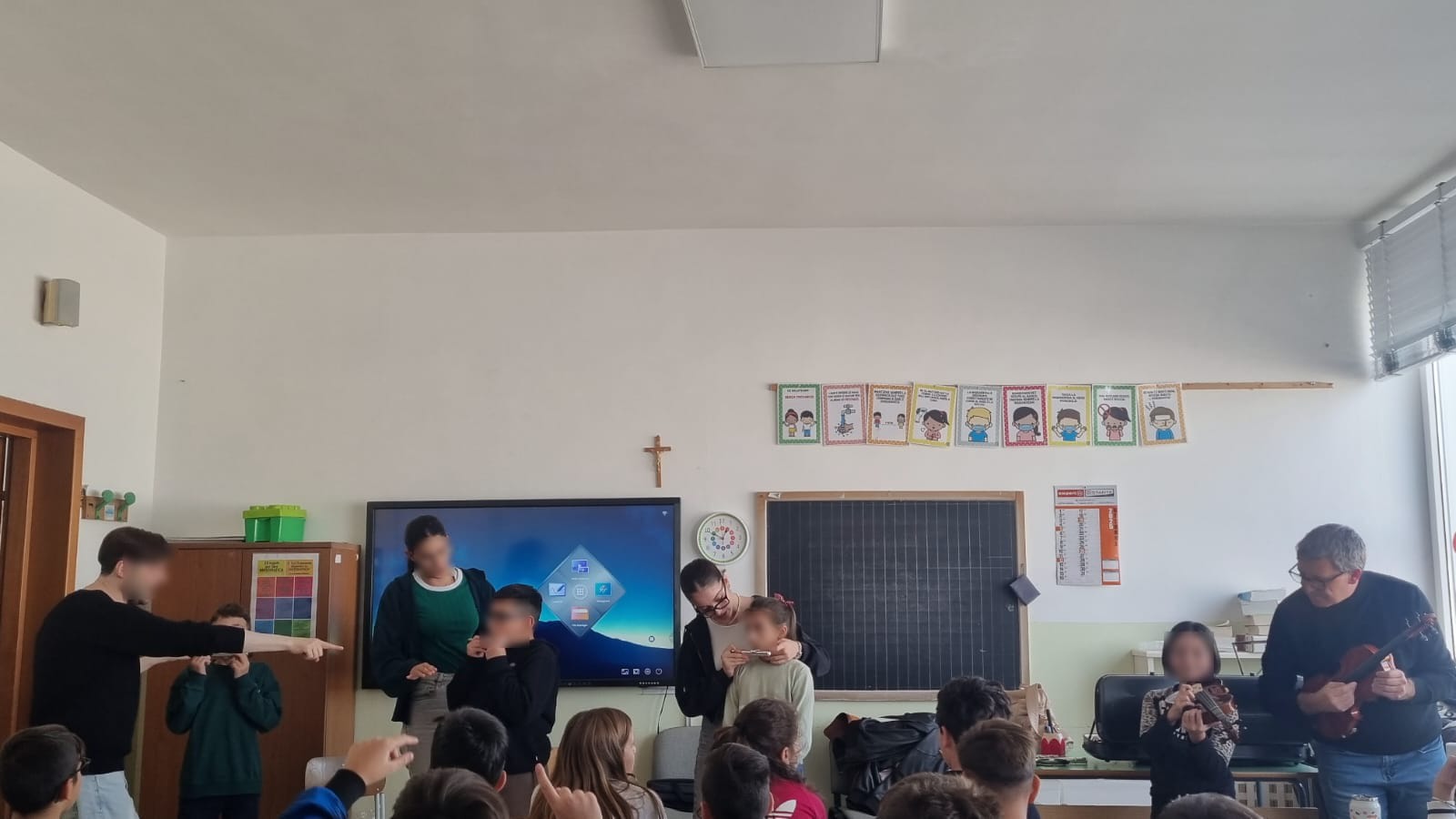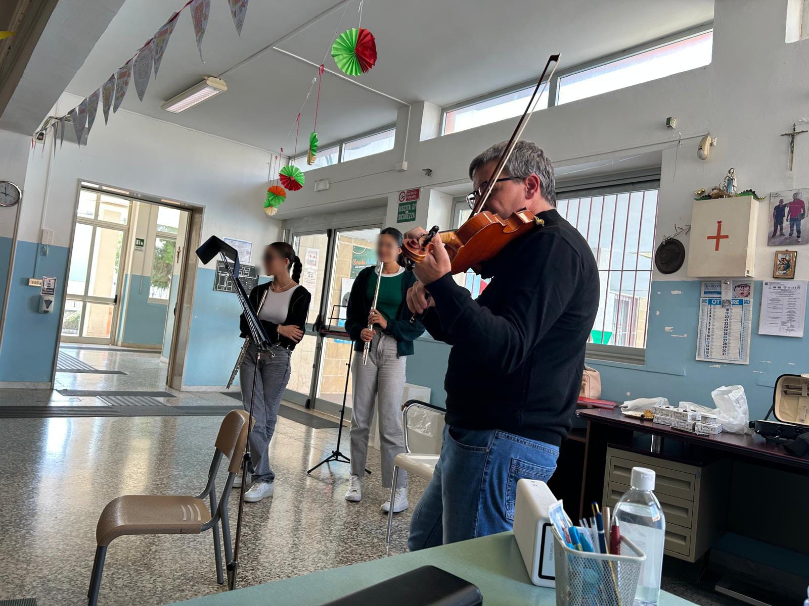 Ha preso avvio il Progetto Orientamento, un’iniziativa ormai ben consolidata nella nostra scuola, che ogni anno accompagna gli alunni della scuola primaria nella scoperta dei percorsi formativi offerti dalla scuola secondaria di I grado. Protagonisti del primo incontro sono stati i docenti di strumento musicale delle classi di chitarra, violino, flauto e pianoforte, che con professionalità e passione hanno guidato i nostri alunni in un coinvolgente viaggio nel mondo della musica. Attraverso brevi dimostrazioni, momenti di ascolto e piccole esperienze pratiche, gli alunni hanno potuto conoscere da vicino le caratteristiche dei diversi strumenti e vivere la magia del suonare insieme. L’iniziativa ha suscitato grande entusiasmo e curiosità, favorendo la partecipazione attiva e l’espressione personale di ciascun bambino. Il progetto proseguirà con ulteriori incontri dedicati alla scoperta di sé, delle proprie attitudini e delle opportunità offerte dal percorso ad indirizzo musicale, con l’obiettivo di orientare in modo consapevole e motivato le future scelte scolastiche. Un sentito ringraziamento va ai docenti di strumento musicale della scuola secondaria per la loro disponibilità e per il contributo prezioso che, come ogni anno, arricchisce l’offerta formativa del nostro istituto, promuovendo la cultura musicale e il valore dell’educazione attraverso l’arte.