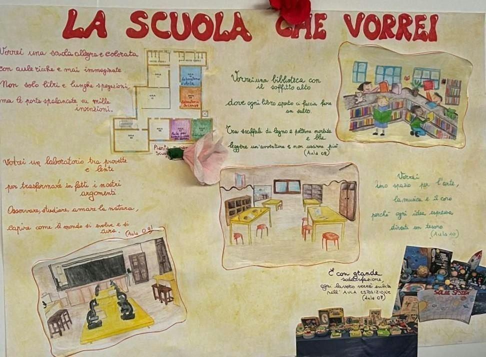 Il percorso svolto nelle classi ha coinvolto gli alunni in attività di progettazione e riflessione, con un’attenzione particolare agli spazi scolastici, in particolare al cortile. Gli studenti sono stati guidati nell’elaborazione di proposte di riqualificazione finalizzate a rendere l’ambiente più accogliente, funzionale e armonioso.